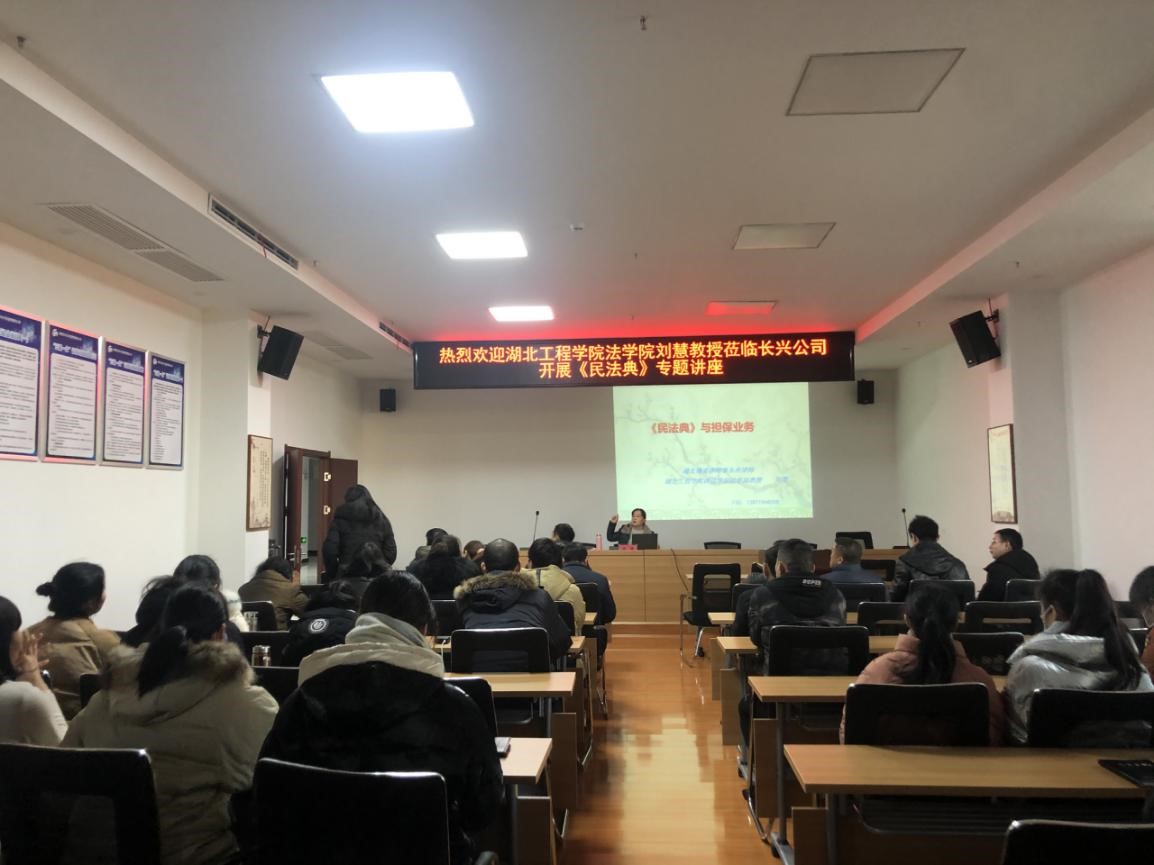 2020年12月30日下午,長興公司組織開展《民法典》專題學(xué)習(xí)講座。本次活動(dòng)邀請了湖北工程學(xué)院政法學(xué)院法學(xué)副教授劉慧同志作《民法典》專題講座。公司領(lǐng)導(dǎo)班子成員、中層以上干部、黨員干部職工共40人參加了本次活動(dòng)。
