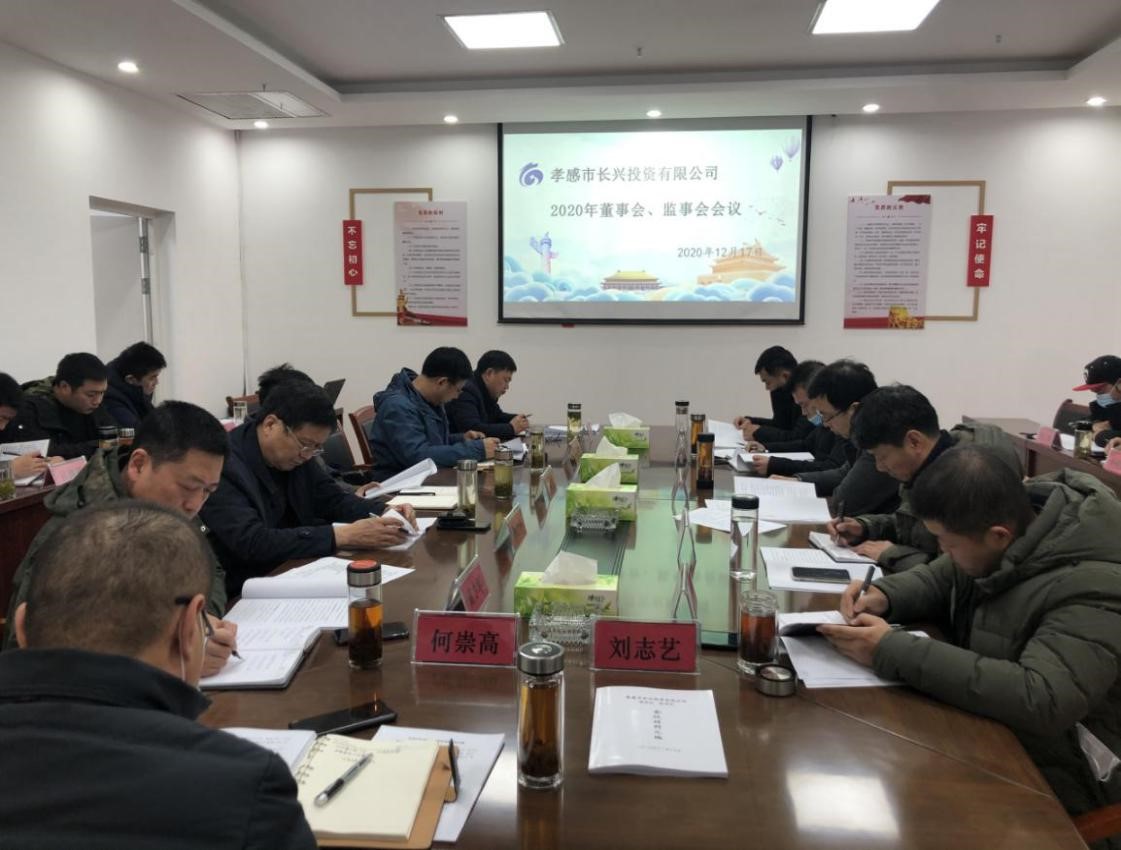 2020年12月17日下午,孝感市長興投資有限公司召開了董事會、監(jiān)事會。公司董事長胡格峰主持會議,公司各董事、監(jiān)事及高管共同參加會議,本次會議應到董事13人,實到董事11人,應到監(jiān)事10人,實到監(jiān)事10人,符合法律程序。